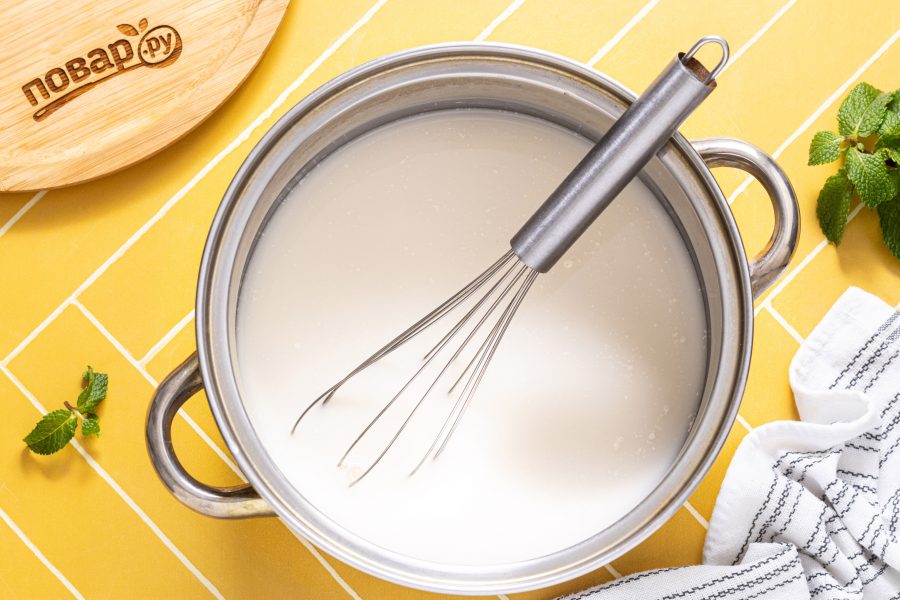 Варите около 5-10 минут на умеренном огне, постоянно помешивая венчиком, пока жидкость не начнет густеть.
