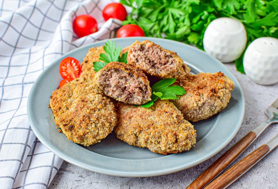 В горячую сковороду налейте растительное масло и выложите котлеты. Обжарьте их с двух сторон на небольшом огне до золотистого цвета.