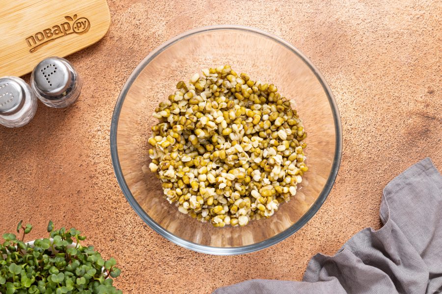 После слейте воду, а маш хорошо промойте. Откиньте на сито и дайте стечь лишней воде. Чем меньше воды останется, тем лучше. Переложите вареный маш в глубокую миску.