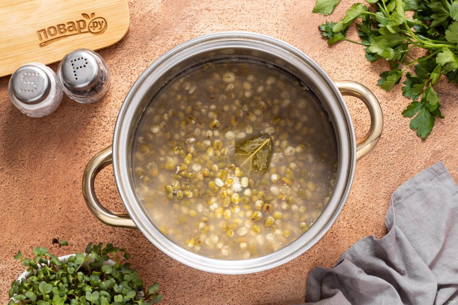 Залейте маш чистой водой, доведите до кипения. Добавьте лавровый лист и варите до готовности примерно 35-40 минут на умеренном огне.