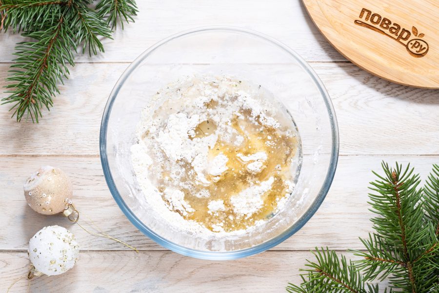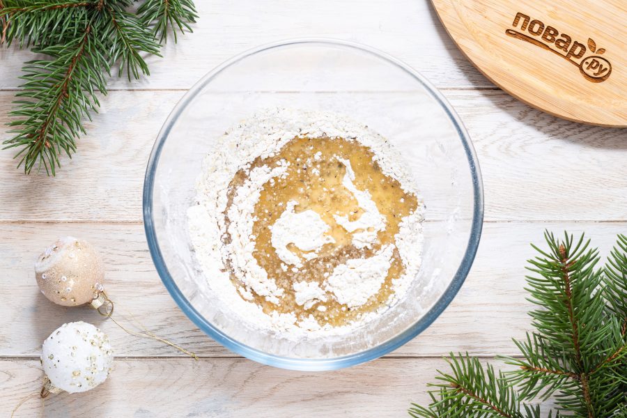 Руками начните смешивать все ингредиенты, чтобы жидкость впиталась в муку. Затем начните собирать тесто. Если спустя 1-2 минуты тесто все еще сильно рассыпчатое, до добавьте еще 1-2 ст.л. воды.