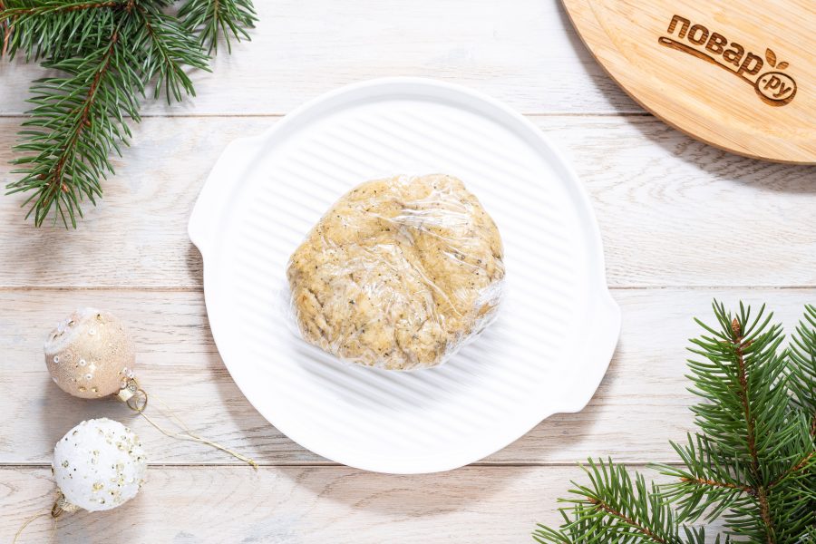Соберите тесто в шар, заверните в пленку и уберите в морозилку на 12-15 минут. В это время включите разогреваться духовку до 200 градусов.