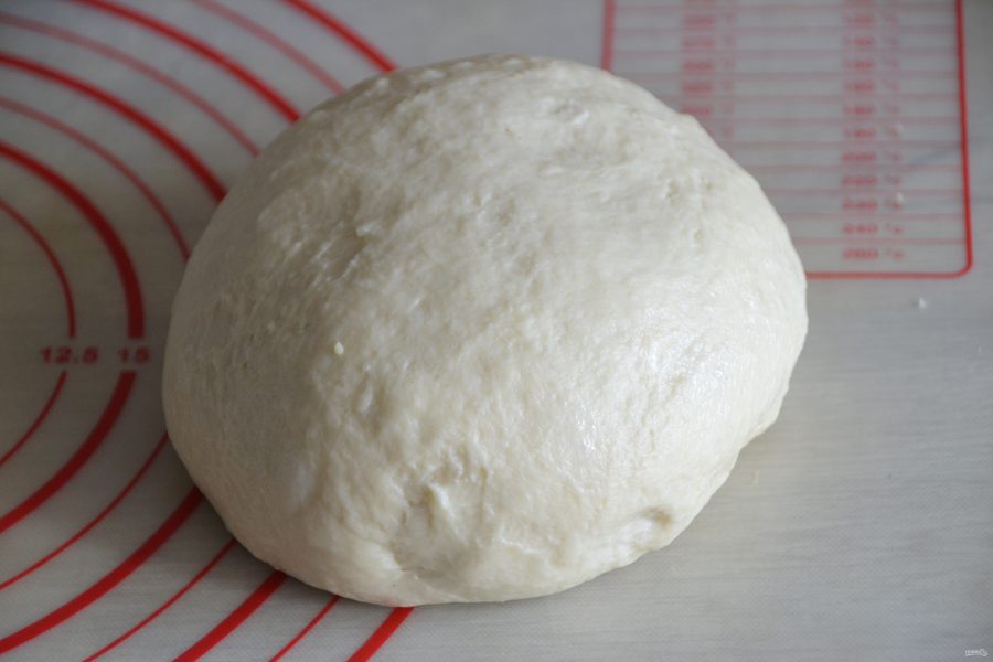 Вымешивайте тесто до гладкости и эластичности. Объем муки может немного отличаться в зависимости от ингредиентов. Накройте тесто пищевой пленкой, дайте ему немного "отдохнуть".