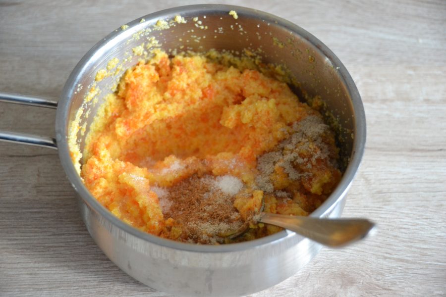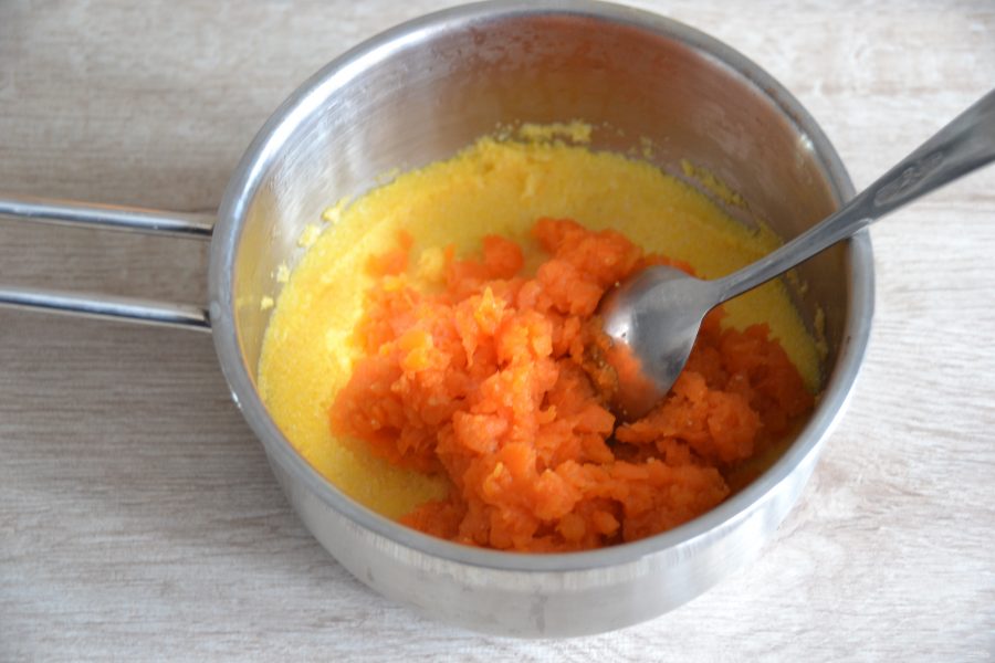 Очистите морковь и отварите для мягкости. Вместо моркови можно использовать тыкву или натёртые на терке яблоки.