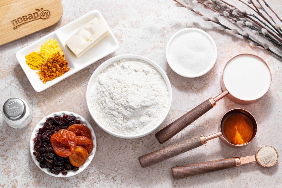 - Масло сливочное размягченное 25 грамм (чтобы смазать кулич)