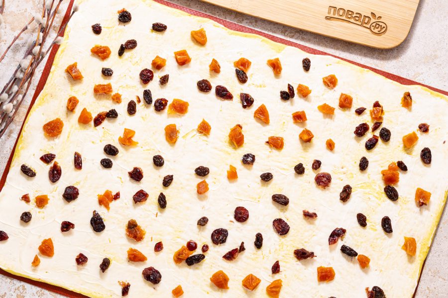 Пока поднимается тесто, промойте сухофрукты в теплой воде и обсушите. Курагу нарежьте на кусочки поменьше. Замочите сухофрукты в виски.