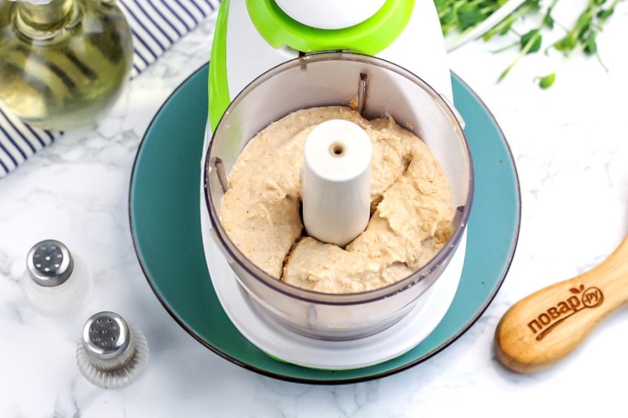 Если вы хотите получить более вязкую жидковатую пасту, то можно добавить 3-5 ст.л. кипятка и еще раз все взбить. В целом время измельчения занимает 15 минут.