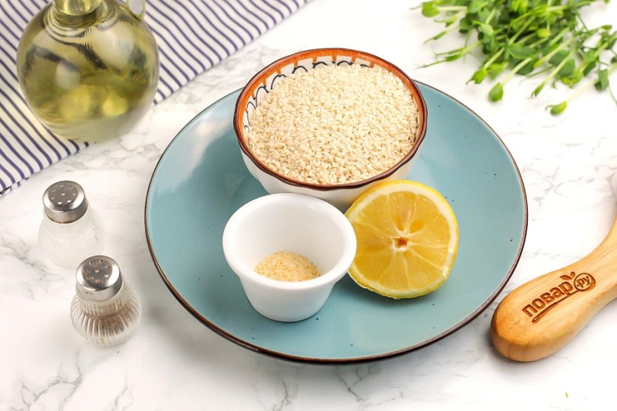 Сначала кунжут будет измельчаться не ровно, будет крупная крошка и слегка маслянистая. Затем масса начнет густеть и будет понемногу отделяться масло. В этот момент начните добавлять по 1 ст.л. растительного масла без аромата. Всыпьте соль и влейте лимонный сок.