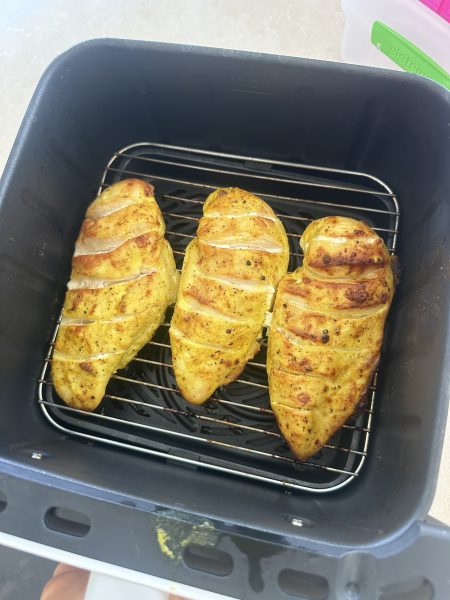 Важно! Не пересушите курицу! При необходимости можно перевернуть филе один раз в процессе приготовления. Когда аэрогриль закончит свою работу, оставьте куриное филе в нем еще на 5 минут, чтобы оно отдохнуло и дошло до готовности.