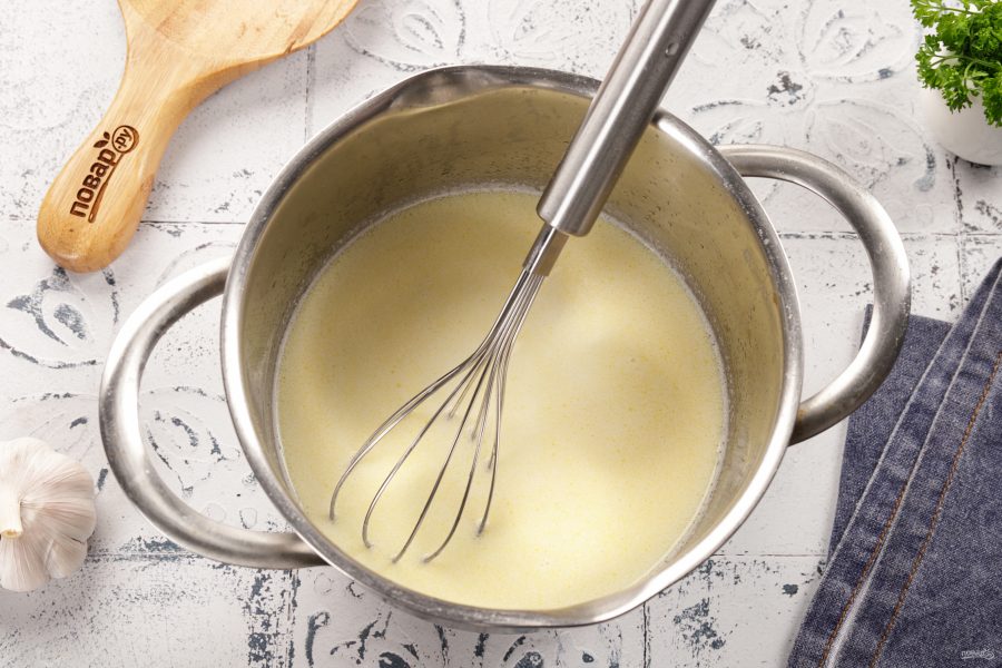 Влейте к тефтелям сливочный соус. Он достаточно жидкий, но при дальнейшем тушении загустеет. Накройте сковороду крышкой, огонь сделайте минимальным. Тушите 10-15 минут, в зависимости от размера тефтелей.