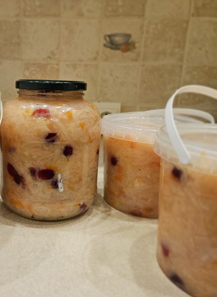 Готовлю капусту как в рецепте- но вот добавил клюквы еще. Всем домашним нравится.