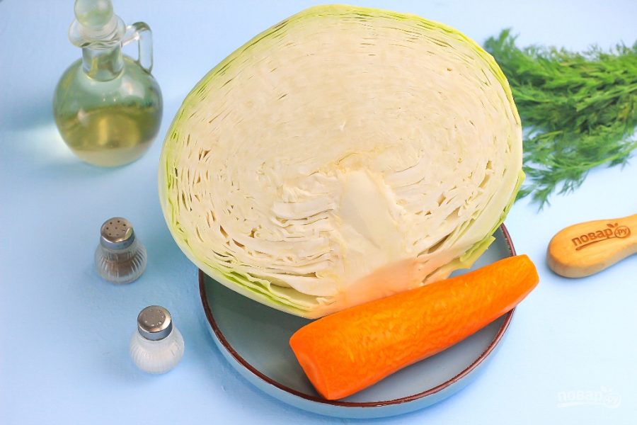 Подготовьте указанные продукты. Обязательно приобретите поздний сорт белокочанной капусты, вилок должен быть именно белого цвета, а не зеленого.
