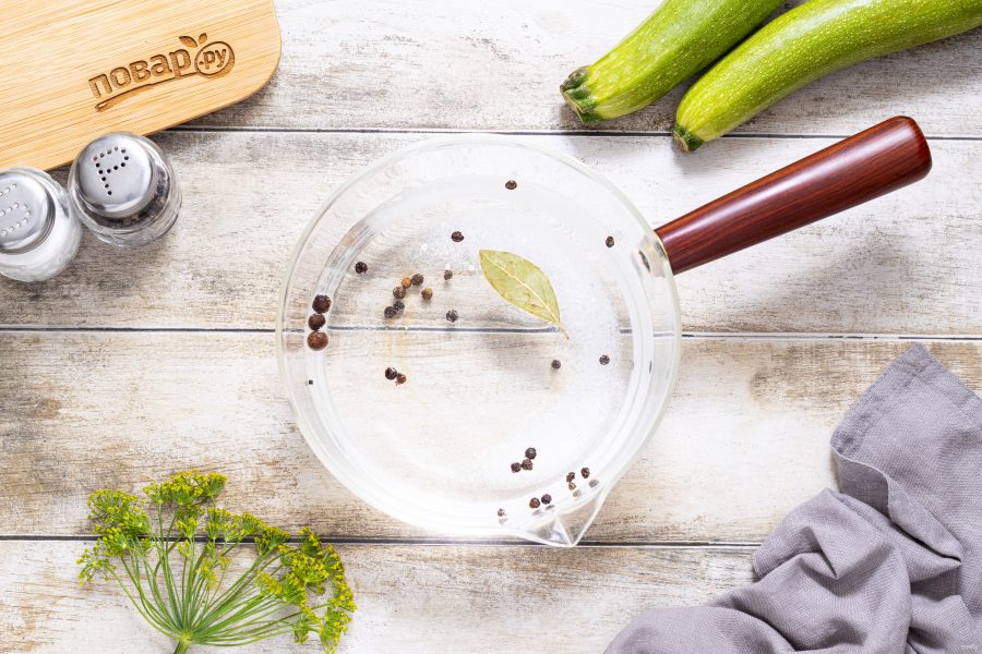 Для рассола вскипятите воду с солью и перцем горошком. Размешайте, чтобы соль растворилась и остудите.