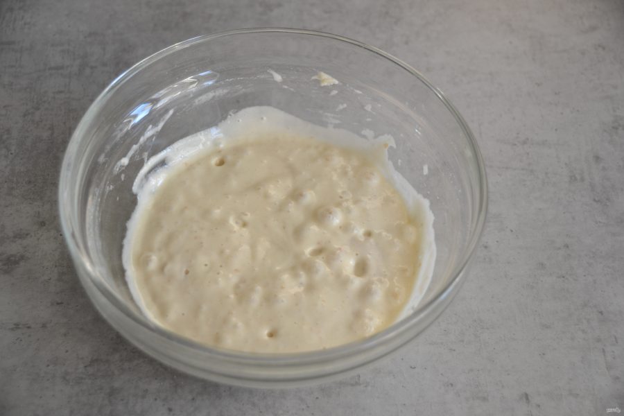 Накройте пищевой пленкой, сделайте ножом небольшие дырочки и оставьте при комнатной температуре на сутки.