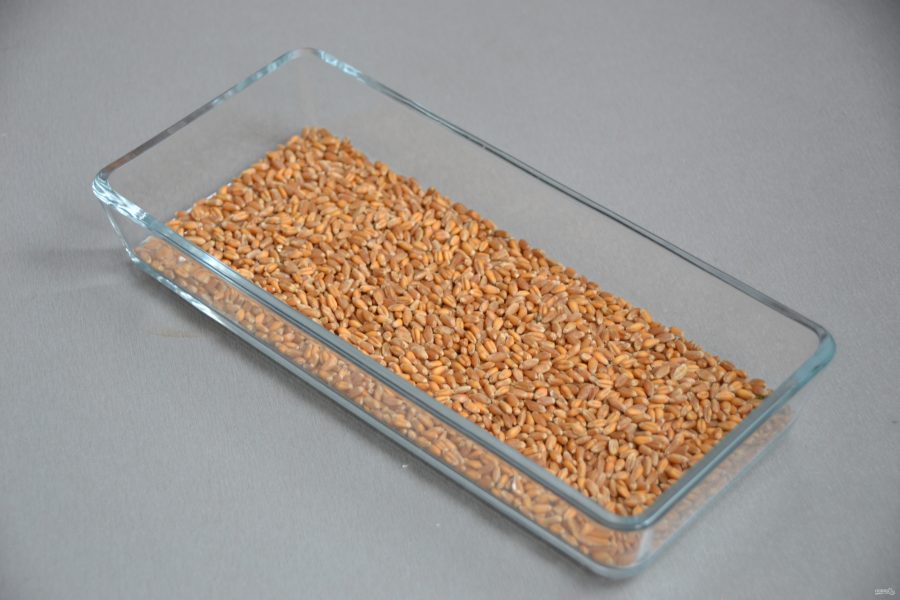 Для приготовления закваски возьмите 100 граммов пшеницы для проращивания. Всыпьте пшеницу в емкость для проращивания.