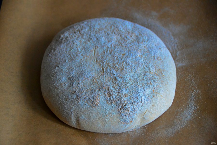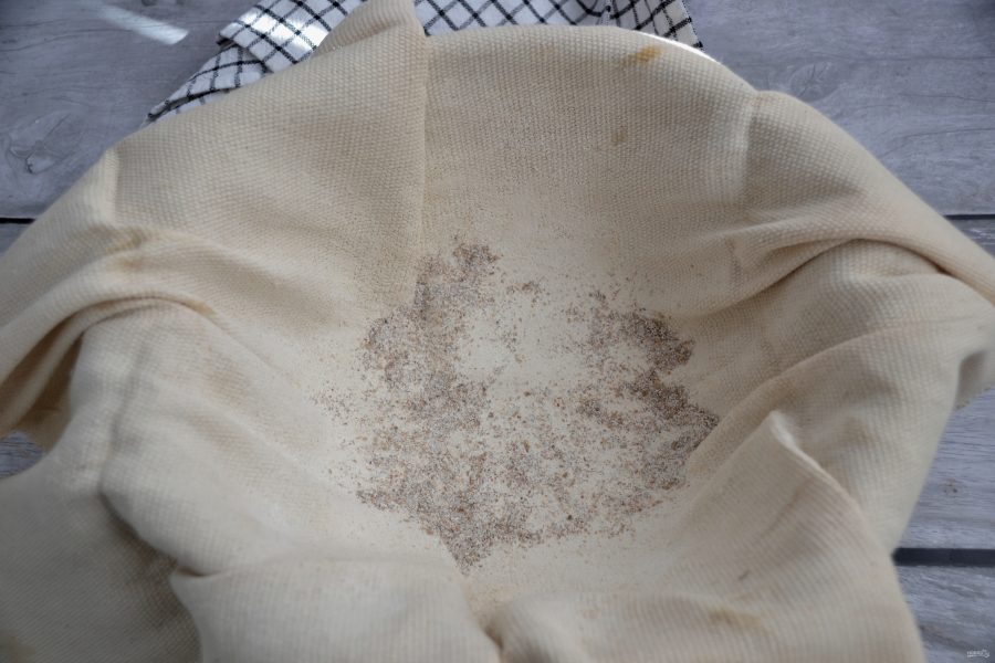 Подготовьте форму для расстойки, это может быть любая емкость. Застелите её плотной тканью, как следует присыпьте ткань мукой, к которой можно добавить немного отрубей.