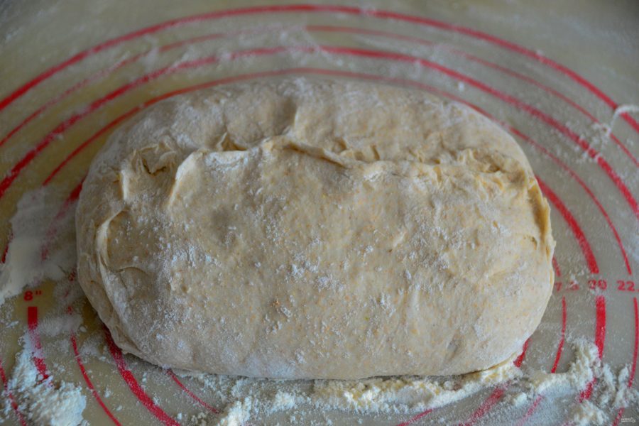 Подберите тесто в шар, накройте пищевой пленкой и полотенцем, оставьте при комнатной температуре на 1 час.