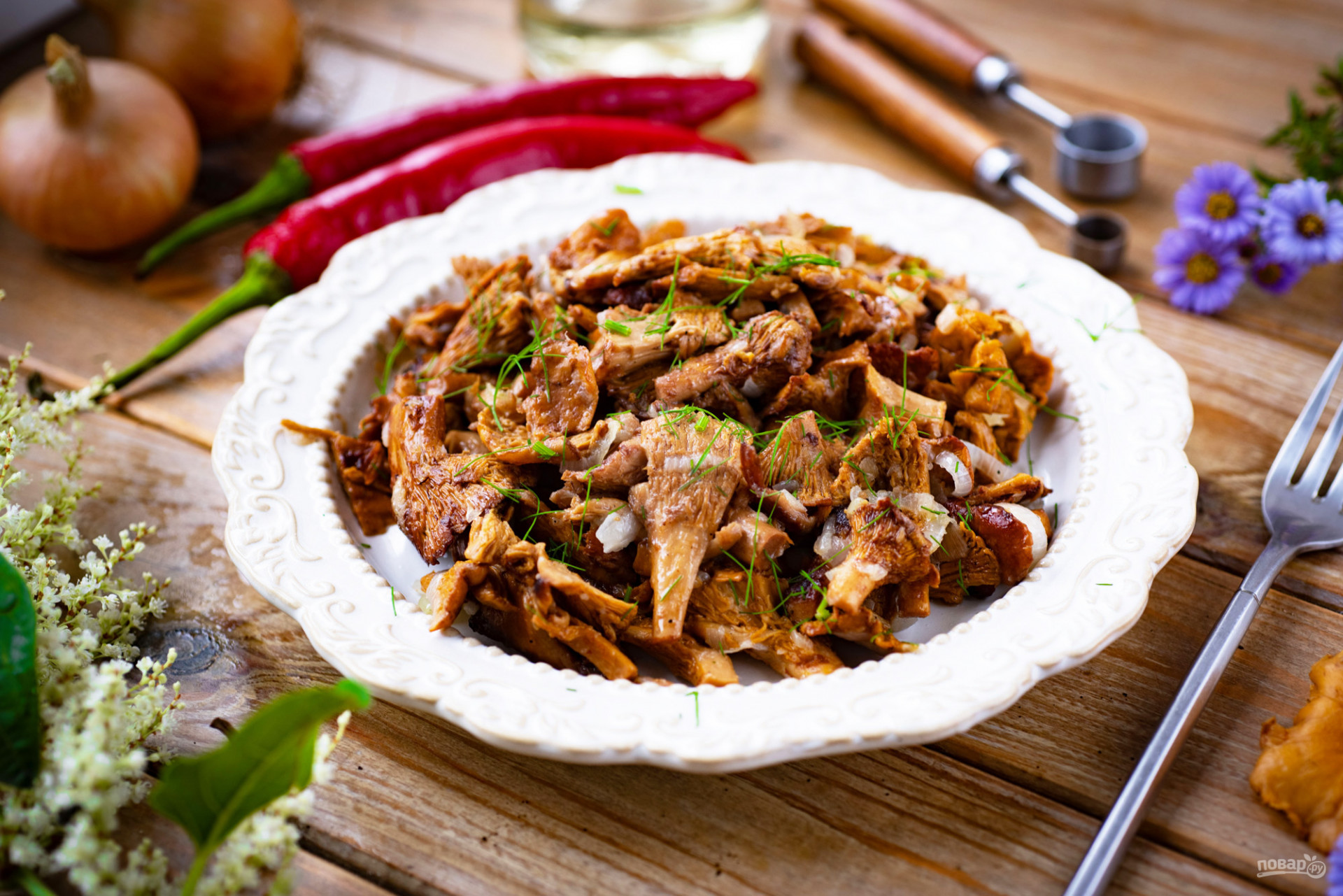 Все ингредиенты соберите по указанному списку. Лисички тщательно переберите и