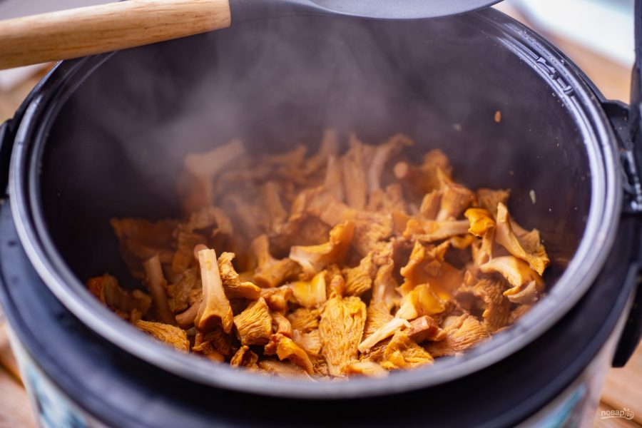 Через 20 минут после того, как вы поставили лисички, откройте крышку мультиварки (не