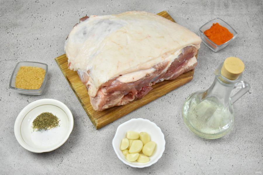 Подготовьте продукты для запекания. Свиную лопатку промойте, просушите насухо бумажными полотенцами. Зачистите от лишнего жира, снимите кожу при наличии. Тростниковый сахар можно заменить белым или использовать мед.