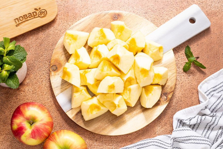 Яблоки помойте, очистите от кожуры. Удалите сердцевину и нарежьте на крупные ломтики.