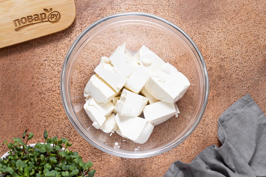 Шелковый тофу аккуратно извлеките из упаковки, слейте жидкость и нарежьте на крупные кубики. Переложите в емкость для измельчения.