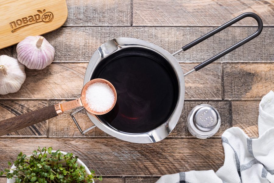 Добавьте сахар, соль. Проварите, чтобы они растворились. В конце добавьте уксус.