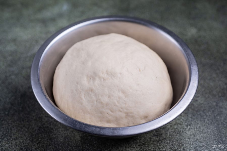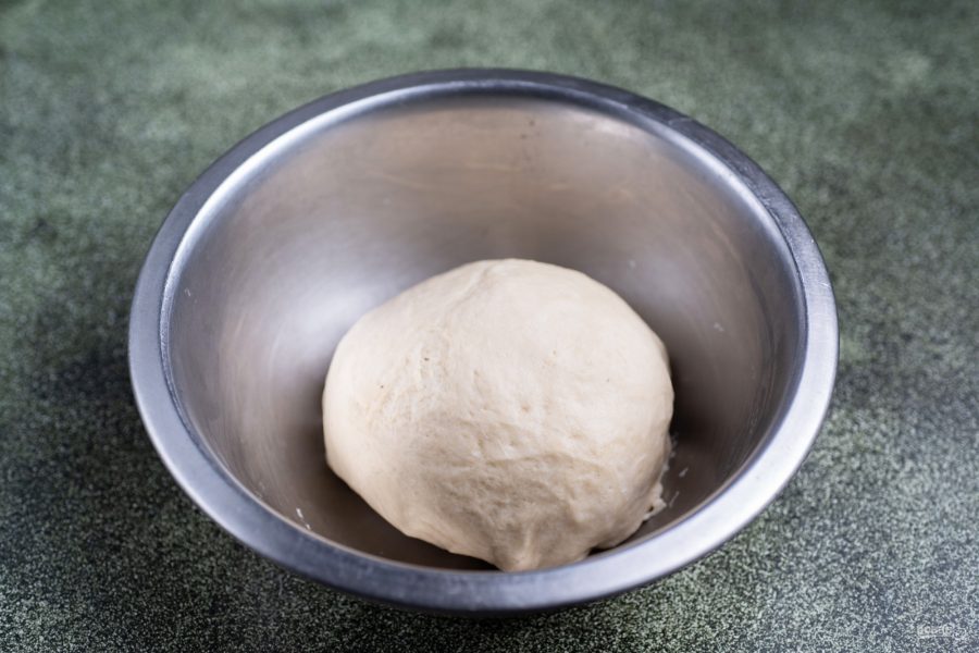 Замесите мягкое, но не прилипающее к рукам тесто. Тесто округлите в миске, накройте кухонным полотенцем и оставьте в покое на 1-1,5 часа подходить.