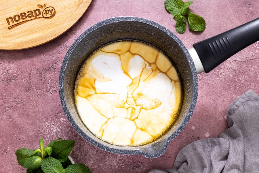 Варите сахарную смесь до тех пор, пока она не карамелизируется. Ориентируйтесь на внешний вид, смесь станет более густой и коричневой. Это займет приблизительно 15 минут.