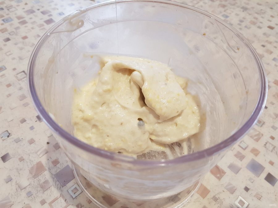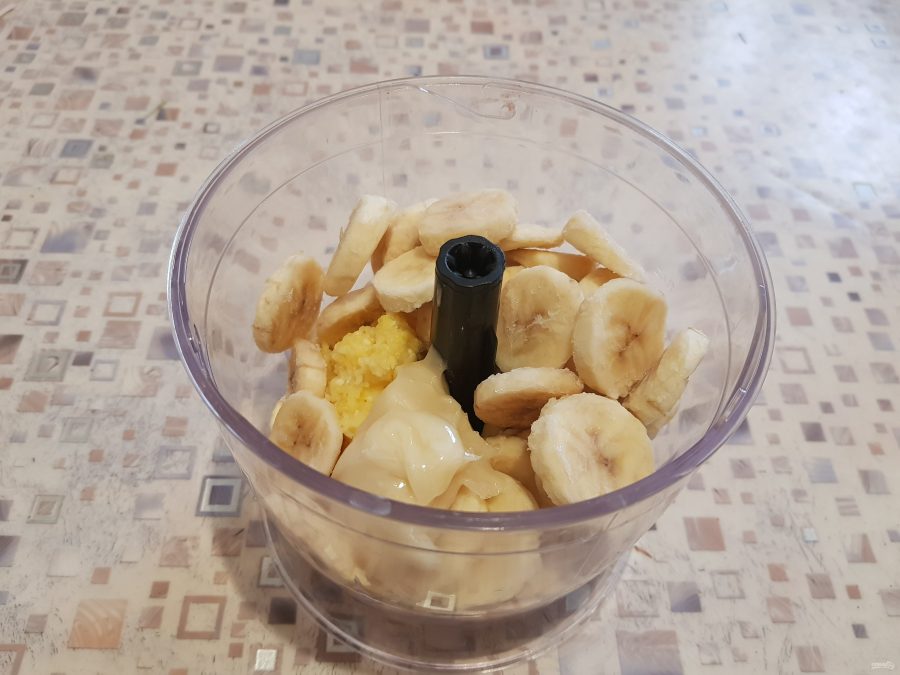 В чашу блендера поместите поленту, замороженные бананы и мёд, пюрируйте в течение 2-3 минут.