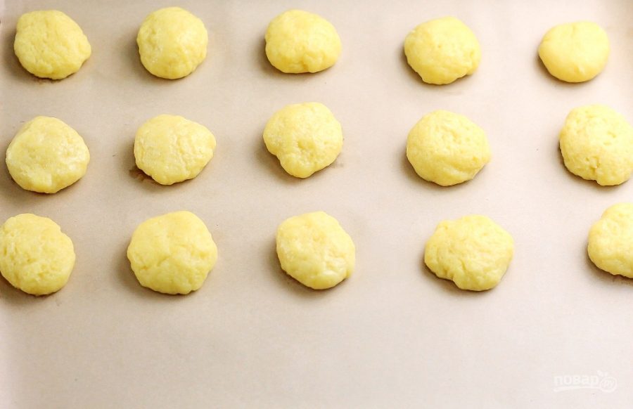 Застелите противень пергаментной бумагой, разогрейте духовку до 180 градусов. Позовите родных, детей или друзей и скатайте из теста колобки, выкладывая их на пергамент. Отправьте противень в духовку на 15-20 минут до зарумянивания заготовок.