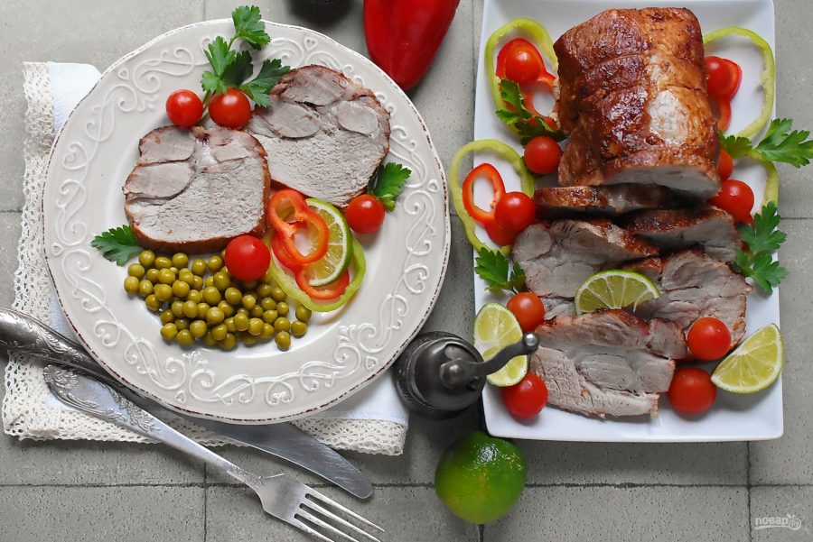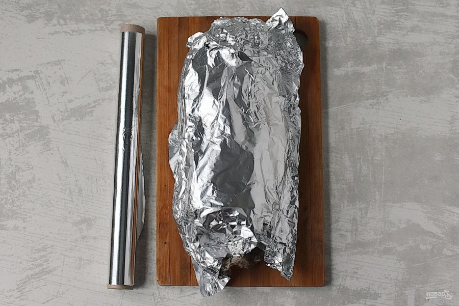 Достаньте мясо из духовки, извлеките из формы и рукава, переложите на тарелку или доску и свободно накройте фольгой. Дайте отдохнуть мясу перед нарезкой 15 минут. Не пренебрегайте этим моментом, если хотите получить сочное блюдо!