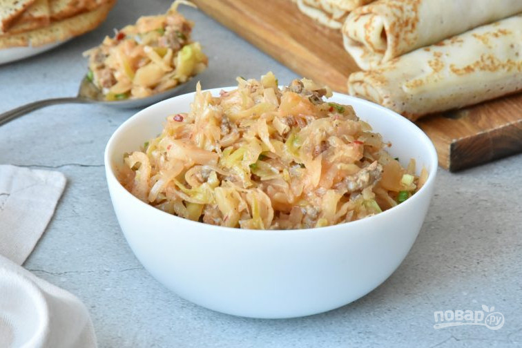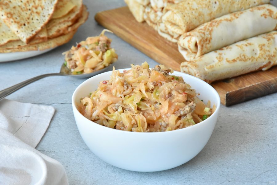 Начинка из фарша и капусты для блинов
