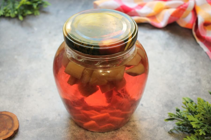 Готовую настойку из ревеня процедите, разлейте по бутылкам и плотно закройте. Перед употреблением охладите и подавайте на стол.