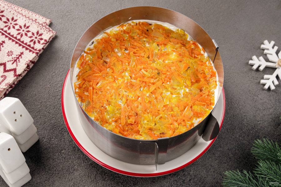 Закуска получается очень эффектной! И очень вкусной — любимый вкус печёночного торта и сметанно-майонезный соус, который превратился в настоящий крем.