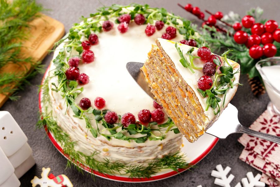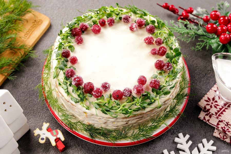 Новогодний печеночный торт