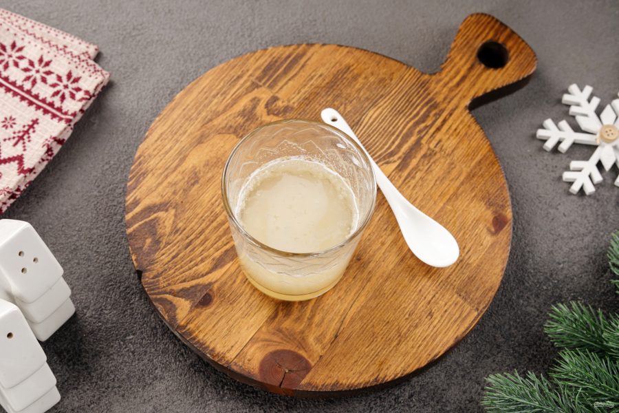 Желатин замочите в холодной воде. Время замачивания различается: для быстрорастворимого порошкового продукта достаточно 2-5 минут, гранулированная версия потребует не менее 20 минут. Смотрите инструкцию на упаковке.