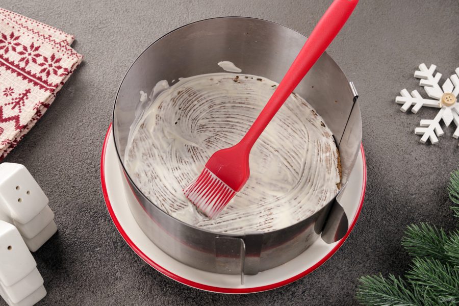 Густеющий соус будет браться комками, поэтому, когда торт будет обмазан со всех сторон, поставьте его буквально на несколько секунд в микроволновку. Соус снова станет более жидким и приобретёт на торте гладкую однородную форму. Тарелку рекомендую использовать с небольшими бортами, чтобы излишкам соуса было куда стечь. Отправьте торт в холодильник на 8-12 часов.