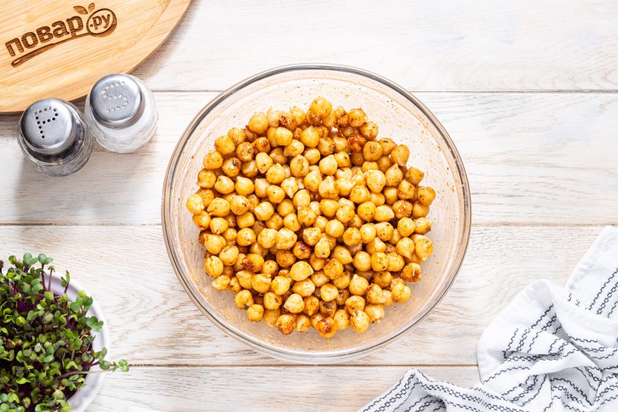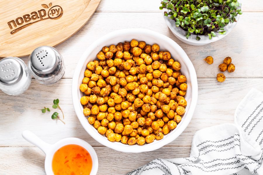 Давайте приготовим хрустящий печеный нут в аэрогриле. Его можно подавать как самостоятельную закуску, а можно добавлять в салаты или, например, в суп-пюре.