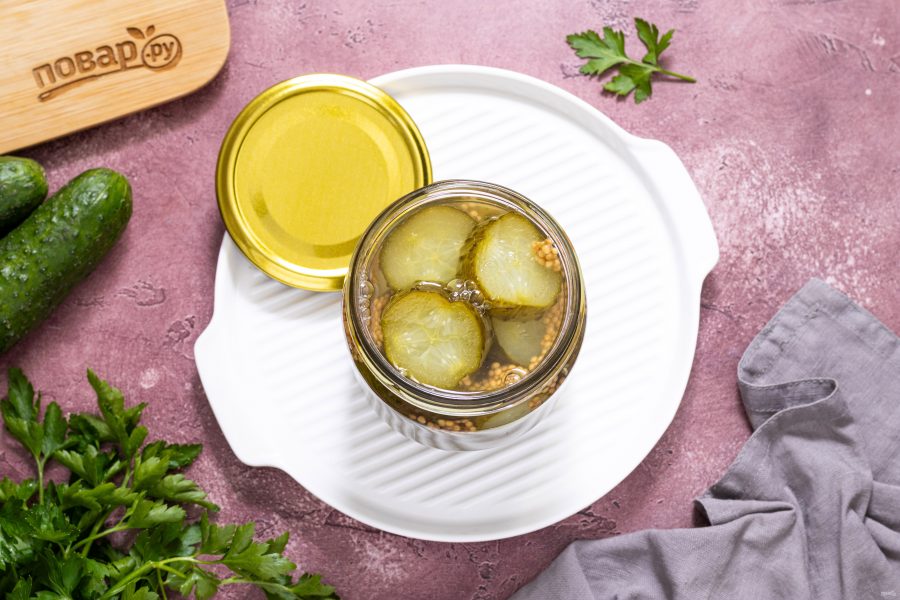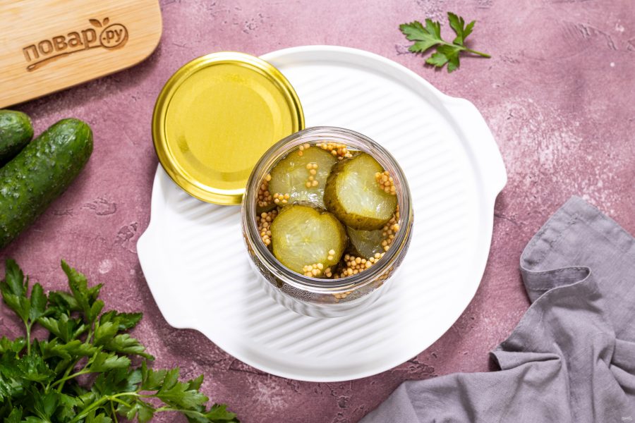 Хочу поделиться рецептом маринованных огурцов с зернами горчицы, которые можно заготовить на зиму. Большой плюс рецепта в том, что огурцы готовятся без дополнительной стерилизации.
