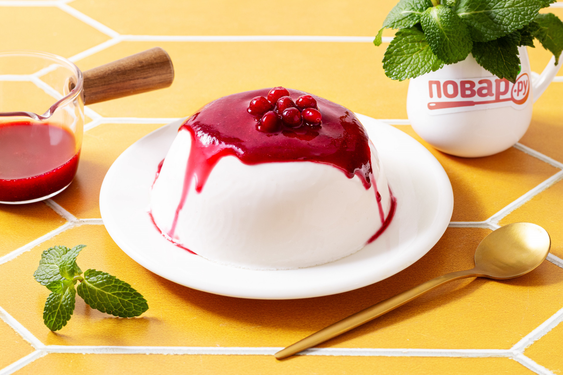 Сверху полейте ягодным соусом.