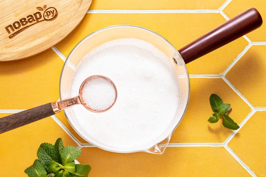 В сотейнике соедините молоко со сливками.