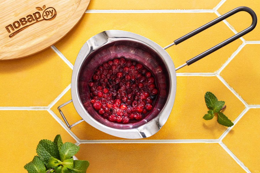 Для ягодного соуса объедите в небольшом ковшике ягоды и сахар. Доведите до кипения и проварите пару минут, чтобы они пустили сок.