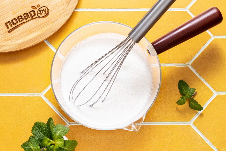 Все перемешайте венчиком, чтобы не оставалось комочков. После нагрейте на медленном огне до кипения, постоянно помешивая. Проварите 1-2 минуты и снимайте с плиты.