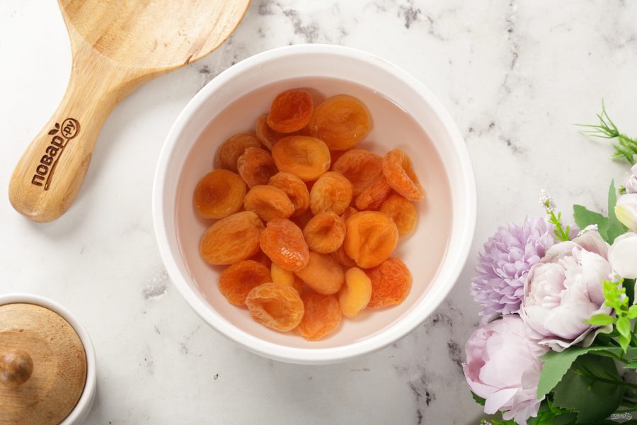 Курагу промойте и замочите в горячей воде на 20-30 минут.