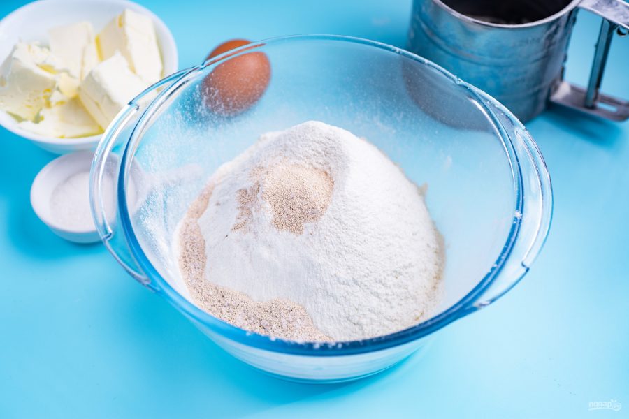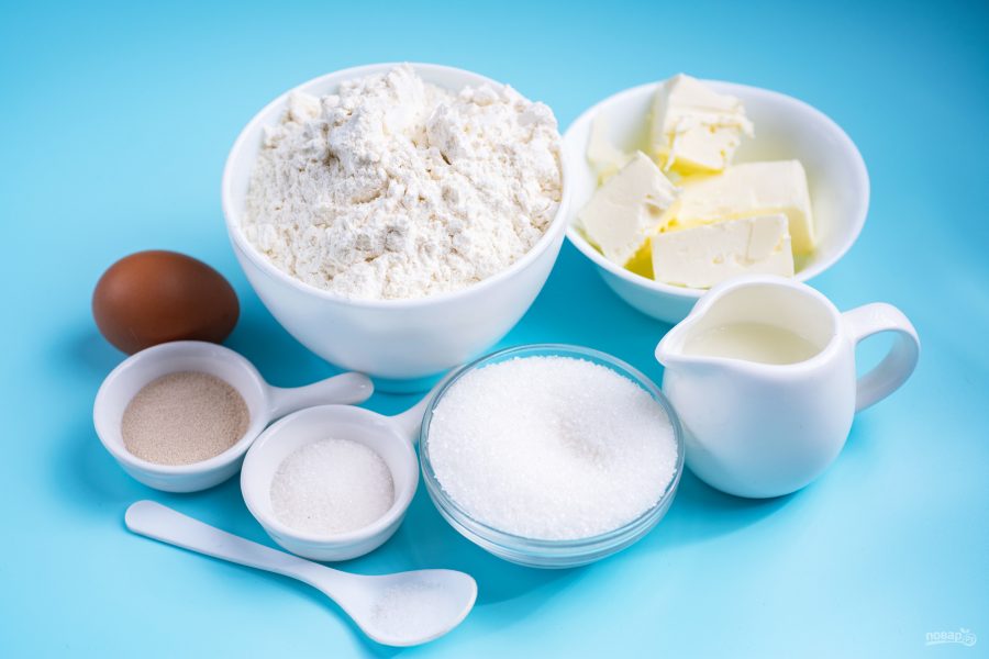 Вместо сливочного масла вы можете в тесто добавить маргарин. Также быстродействующие сухие дрожжи можно заменить на свежие прессованные.Состав / Ингредиенты: