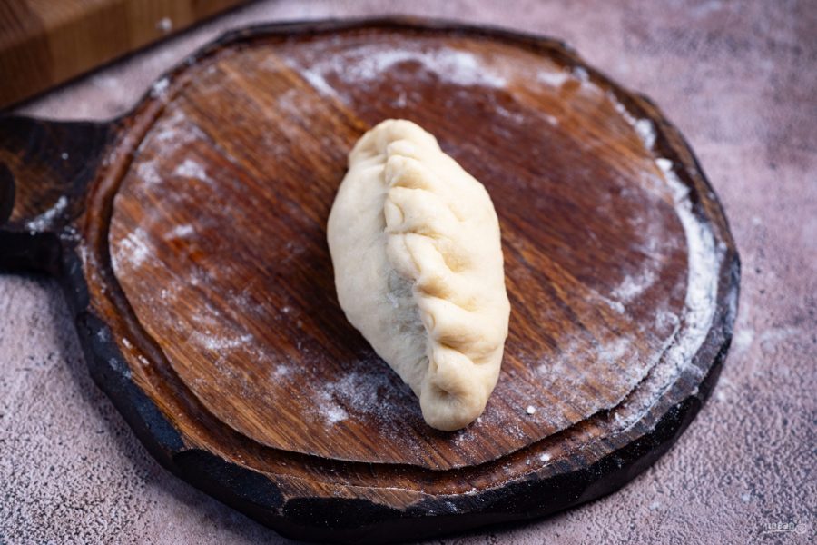 Из всего теста и начинки приготовьте заготовки пирожков и выложите их на противень,