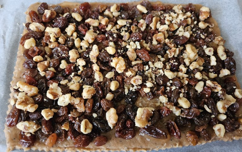 Грецкие орехи подсушите в сковороде или в духовке. После измельчите в блендере и добавьте в тесто.