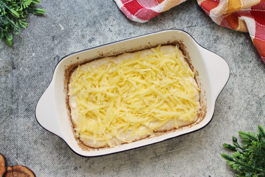 Форму для запекания смажьте растительным маслом и посыпьте панировочными сухарями или манкой. Это позволит после приготовления легко извлечь готовый пирог из формы.