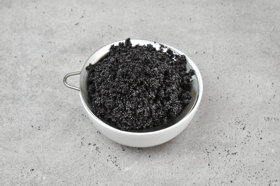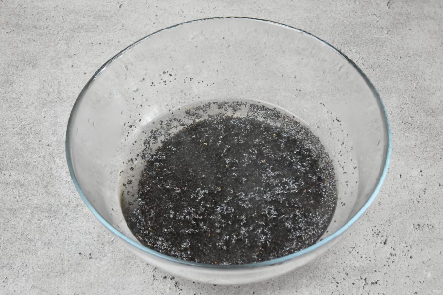 Разделите творожную массу на две части, одна из которых на 100 граммов меньше по весу. В нее добавьте мак. Отрегулируйте консистенцию творожной массы в обеих мисках с помощью добавления сметаны.